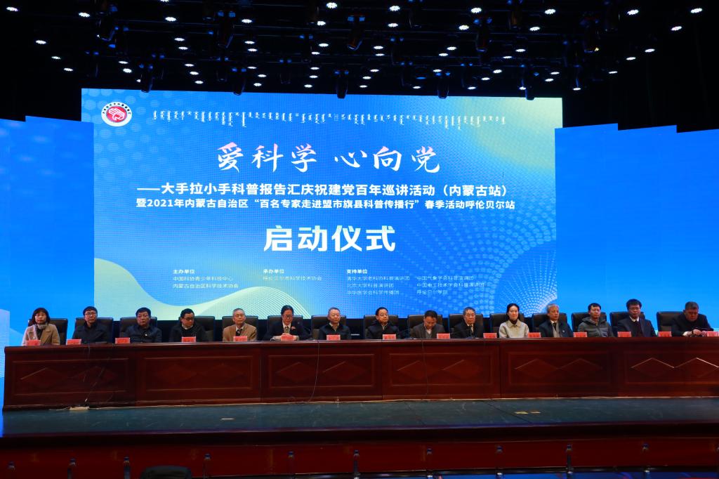 4月12日,中国科协“爱科学,心向党”大手拉小手科普报告汇庆祝建党百年巡讲活动内蒙古站启动仪式在艺术楼演播厅成功举行,校党委书记王广利出席仪式。本次活动是由中国科协青少年科技中心、内蒙古自治区科学技术协会主办,呼伦贝尔市科学技术协会承办,美加墨世界杯官网科学技术协会、清华大学老科协科普演讲团、南京大学科普演讲团、中华医学会科学传播团、中国气象学会科普演讲团、中国电工技术学会科普演讲团鼎力协助。呼伦贝尔市副市长郝桂娟、中国科协青少年科技中心副主任张振威、内蒙古自治区科学技术协会主席赵吉、以中国科学院院士武向平为代表的演讲团成员,及美加墨世界杯官网师生代表参加活动。呼伦贝尔市科协主席吴铁宏主持了启动仪式。
