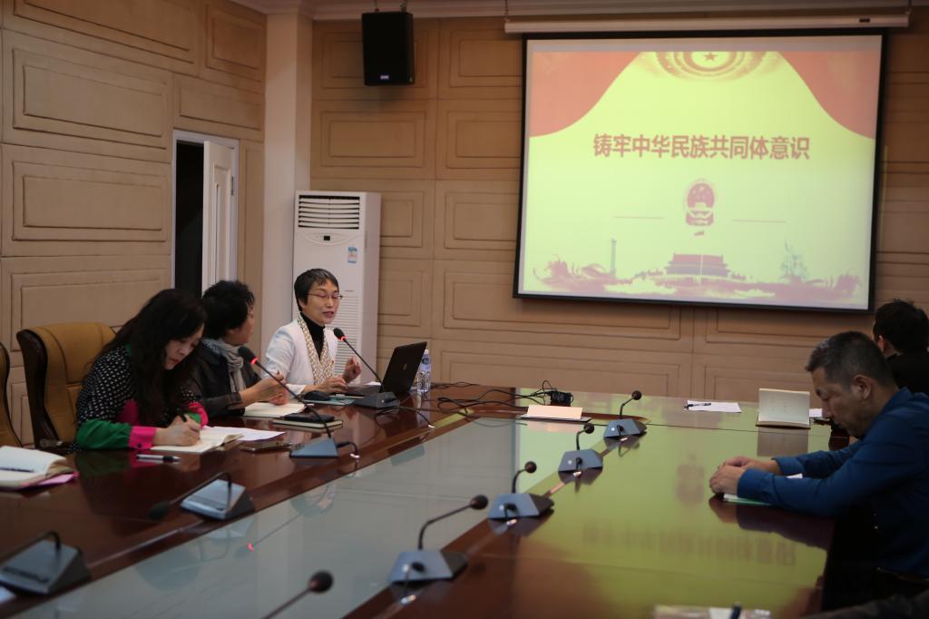 谢红岭教授重点讲解了习近平总书记关于民族区域自治“两个结合”的重要论述、铸牢中华民族共同体意识、推行国家统编教材使用及国家通用语言文字教育工作方面内蒙古教育系统的落实措施。同时,从民族问题和民族工作为切入点,系统分析了“多元一体”“两个结合”等概念的深层含义,阐述了铸牢中华民族共同体意识的重大意义。