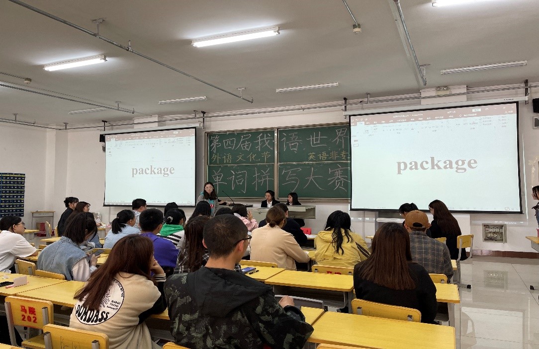 外文单词拼写大赛分为俄语组、英语组两个组别。5月16日,英语组比赛正式拉开帷幕。英文单词拼写大赛分专业组和非专业组两组进行,上午9时,专业组比赛在外院楼404室举行。下午2时,非专业组比赛在崇文楼B201教室举行。外国语学院教学经验丰富的英语教师担任比赛评委,来自全校各学院共99名选手参加了此次比赛。