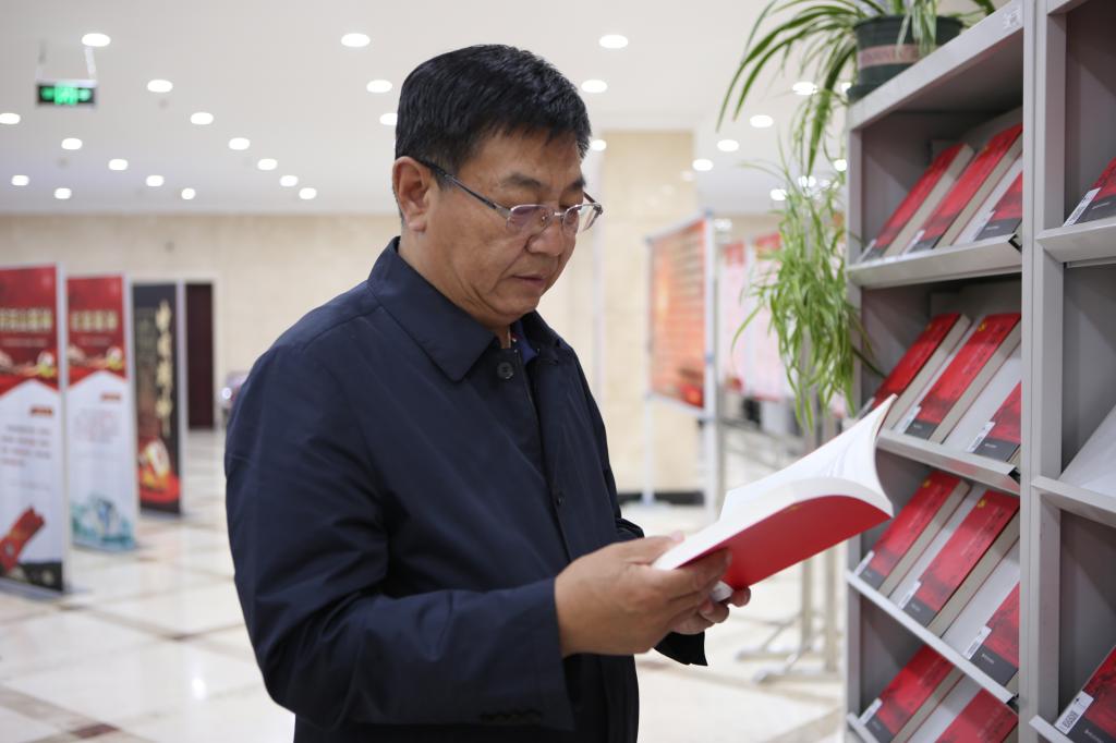 校党委书记王广利亲临现场宣布开展,并认真参观了展览。他对本次展览助力党史学习教育的意义、参展的红色图书质量、以及展览的整体布局都给予了高度评价,对学校党委宣传部和图书馆为此次展览所付出的努力也给予了充分肯定。
