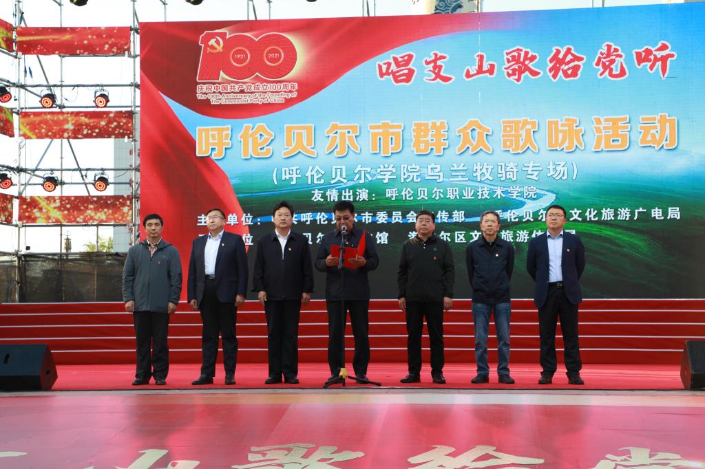 6月10日晚上,世界杯官网和呼伦贝尔职业技术学院在成吉思汗广场联合开展主题党日活动,为海拉尔区举办“唱支山歌给党听”文化下乡专场文艺演出。两校领导班子成员及相关职能部门党员代表参加演出启动仪式。