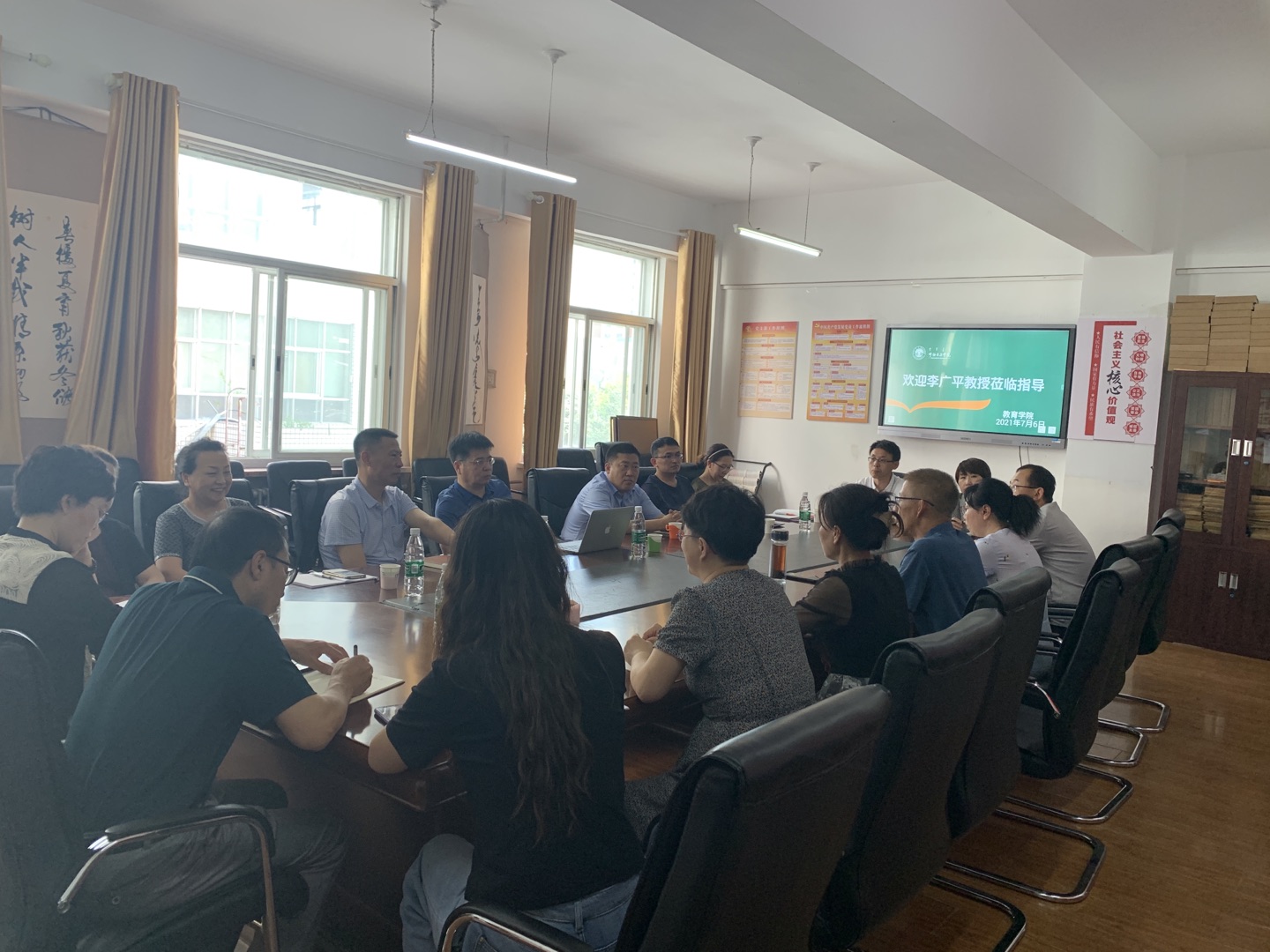 7月6日下午,李广平教授分别与数学与统计学院和教育学院教师进行座谈交流,对数学与应用数学师范类专业二级认证的整改报告进行了指导,与专业教师共同探讨整改过程中遇到的问题和解决方案,对学前教育师范类专业二级认证申请书给予了指导性意见,并详细解答了学前教育专业在认证准备工作中存在的问题。