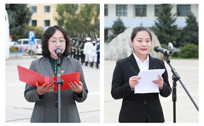 学生代表陈蕊进行国旗下演讲。她说,当代大学生将努力发扬爱国主义的光辉旗帜,将以青春之我、奋斗之我,为民族复兴铺路架桥,为祖国建设添砖加瓦。经济管理学院党总支副书记李静代表全体教师发言,并对同学们寄予希望。她勉励全体同学们学习奥运健儿奋发图强、超越平凡、挑战自我的拼搏奋进精神,用汗水照亮青春的梦想,用实际行动践行“强国梦”,刻苦学习文化知识,积极参加社会实践,做到学有所思,学有所悟,学有所行,成为腹有诗书、胸怀锦绣的时代新人。辅导员教师代表吴晗、吴怡、王巍、孟磊配乐朗诵了《为了星辰大海》。