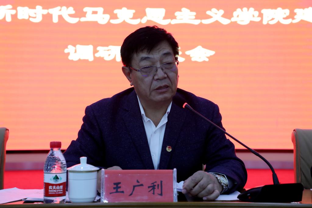 王广利书记在讲话中指出,要进一步加强学习领会。要全面贯彻落实中央关于加强马克思主义学院建设的战略意图、丰富内涵,确保《意见》落实落地;要始终坚持“政治建院”。把政治建设摆在加强马克思主义学院建设的首位,坚持“马院姓马、在马言马”,深刻认识到《意见》对于建好建强新时代马克思主义学院、加强马克思主义学院内涵式发展、高质量发展具有重大意义;要持续推进“学科强院”。在加强马克思主义理论学科建设、推进思想政治理论课改革创新、强化课程体系和教材体系建设等方面,扎实推动马克思主义学院内涵式发展;持续打造“政治要强、情怀要深、思维要新、视野要广、自律要严、人格要正”的高素质思政课教师队伍。王广利书记强调,要切实加强党对马克思主义学院建设的领导,学校党委要把马克思主义学院建设工作摆在重要位置,加强领导和统筹规划,各相关职能部门要把落实《意见》纳入工作日程,拿出时间表,真正落地落实。
