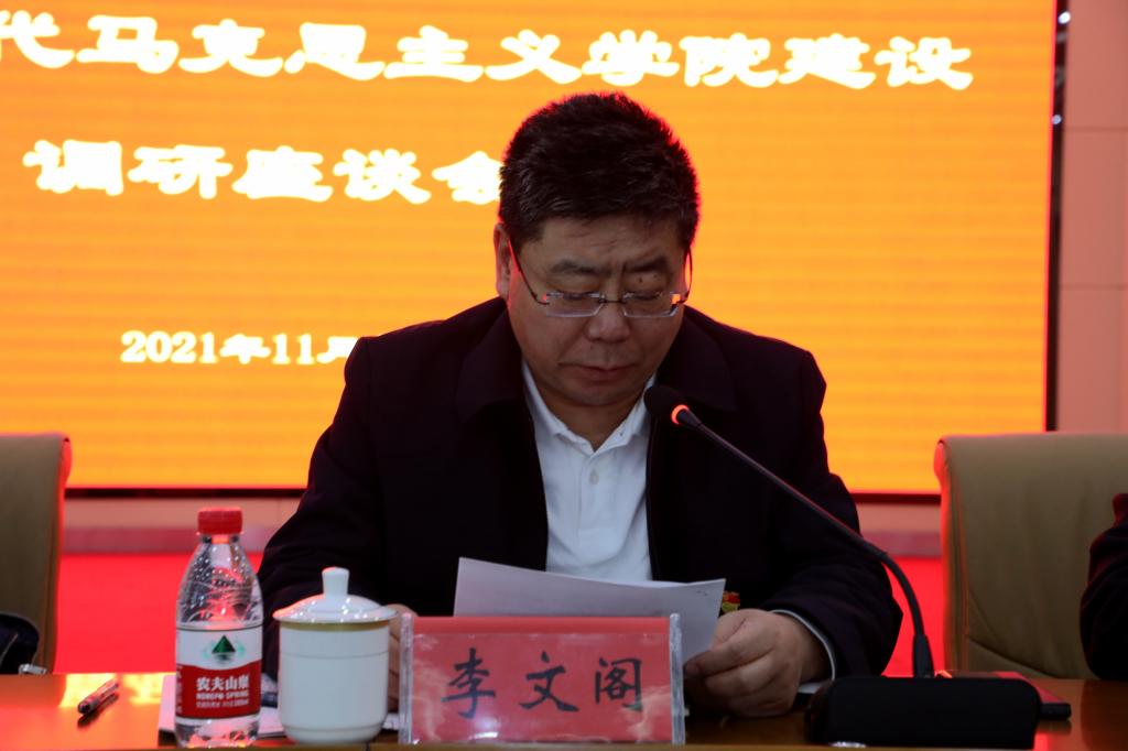 11月4日下午,学校党委在崇文楼A201会议室组织召开“加强新时代马克思主义学院建设”调研座谈会,专题学习贯彻落实中共中央办公厅印发的《关于加强新时代马克思主义学院建设的意见》(以下简称《意见》)。学校党委书记王广利,党委副书记、校长李文阁,党委副书记张国栋,党委委员、副校长孟祥宏,党委委员、副校长敖特根,党委委员、组织部部长吴静怡,党委委员、宣传部部长刘秀兰,以及教学、科研、学科、人事、发展规划等相关职能部门负责人,马克思主义学院领导班子,思政课教师代表等参加会议。会议由李文阁校长主持。