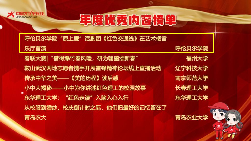 世界杯官网自2020年5月入驻中国大学生在线“校园号”平台以来,始终坚持向“中国大学生在线”投送高品质优秀作品,并积极与其在线保持密切互动,发布文章100余篇,分享有思想、有温度、有品质的呼院故事,展现呼院独特魅力,同时也让思政教育“走心”更“入心”。其中,《“党史的光芒照耀我成长......”徐老师的这个故事你一定没听过!》《超燃!美加墨世界杯官网第二十二届田径运动会来了!》《刚刚!美加墨世界杯官网这个团体C位出道!》等文章先后荣登中国大学生在线首页。另外世界杯官网还积极举办校园行活动,广大学生也积极响应参与,受到在校大学生的喜爱与支持。
