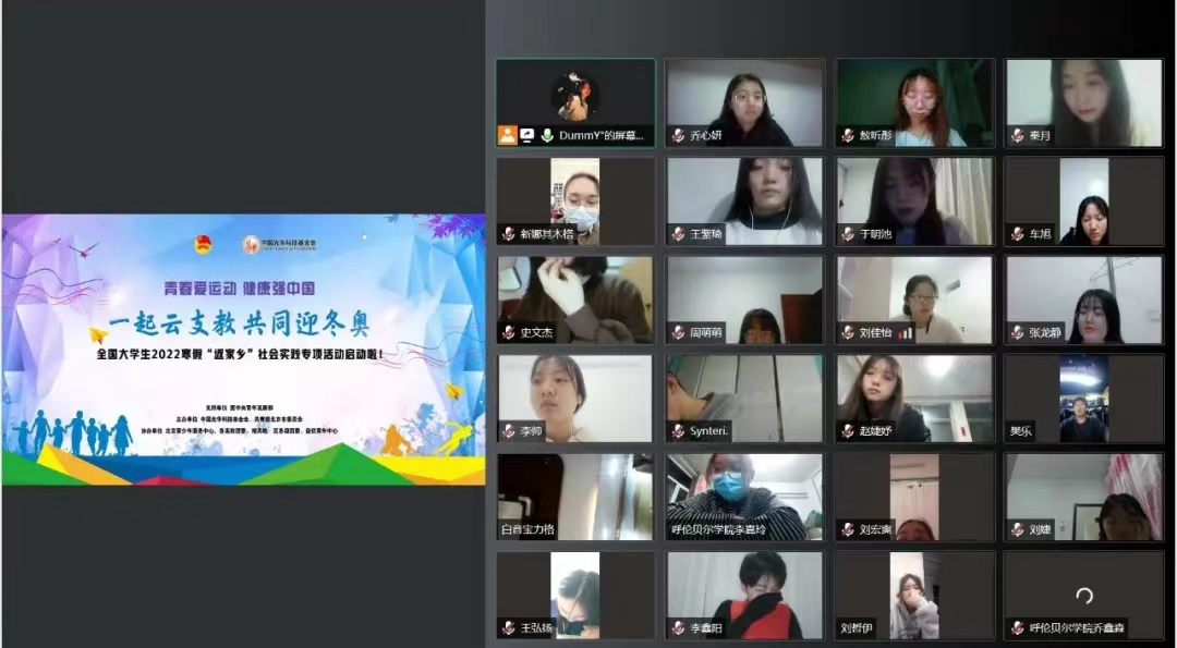 本次活动汇聚全国220多所高校、6万多名大学生与乡村 400多所中小学青少年结伴一起云运动、一起看冬奥、一起云阅读、一起过奥运年。世界杯官网历史文化学院100名青年学生志愿者响应号召,与天山第六中学和天山实验小学进行对接,开展了为期3个月的“云支教”,包括“一起云阅读,增强家国情怀”“一起云运动,助力冬奥”“一起备课,更好帮扶结对对象”“民族团结一家亲宣讲”“乡村振兴科普宣讲”等活动。
