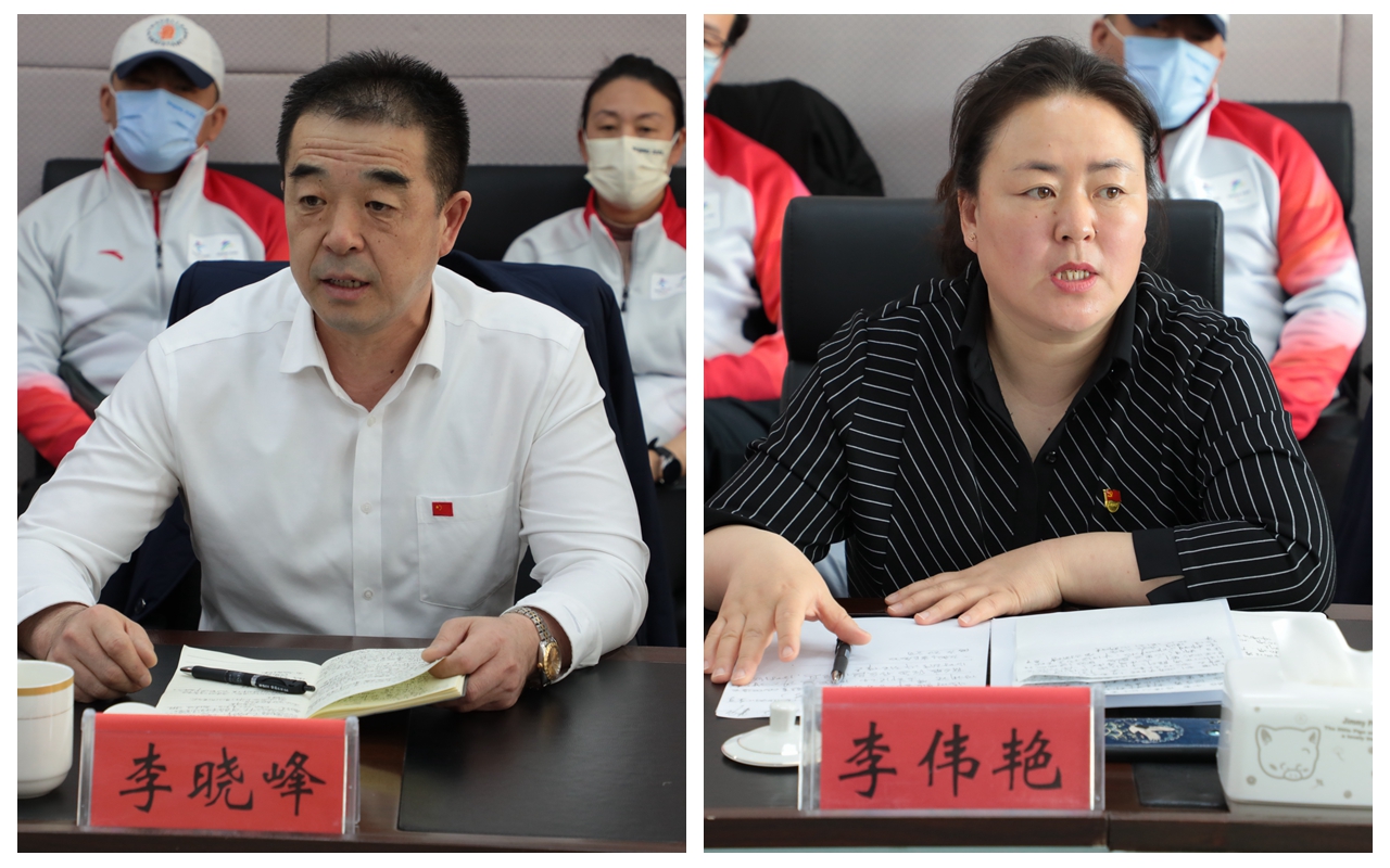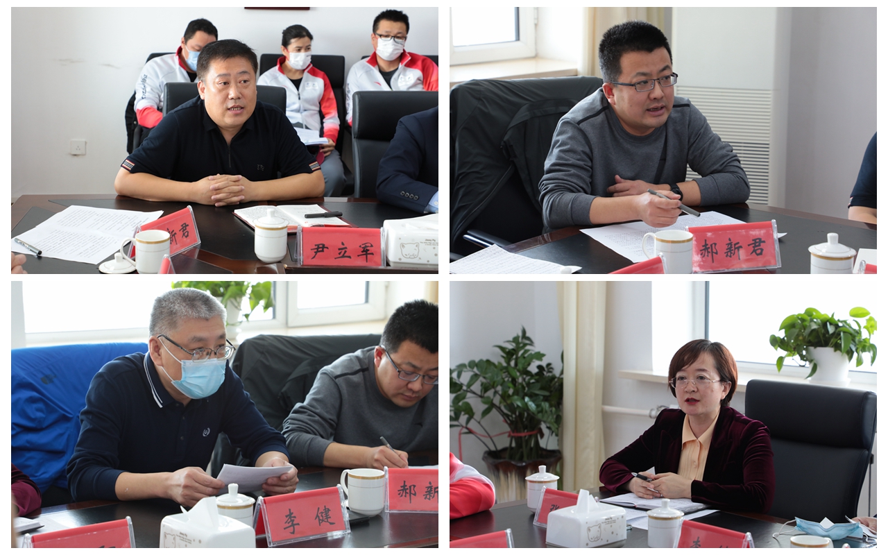 体育学院党总支书记李伟艳、院长李晓峰从体育学院人才队伍建设、冰雪运动专业建设、助力推广冰雪运动等方面进行了发言。教务处处长尹立军、团委书记郝新君、学生工作处处长李健、宣传部副部长张阳分别从冰雪运动专业建设、体教融合、志愿服务、弘扬冬奥精神等方面进行了发言。