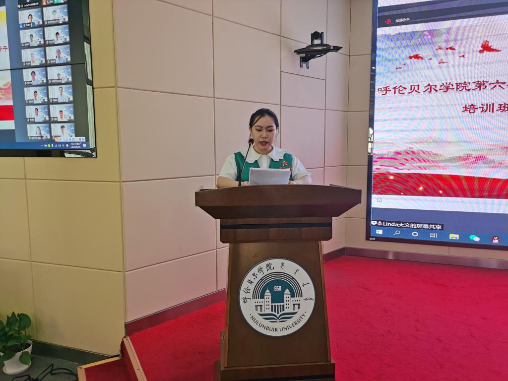 第六期“青马班”优秀学员代表刘莉琳进行发言。她阐述了自身在“青马班”中的所悟、所感,并表示将时刻铭记“青马人”身份,做一名合格优秀的“北疆青马人”。同时,送上了对新一期的青马学员的祝福,希望新一期“青马团团”们都能勇敢且坚定的踏上“学马、信马、爱马、传马”的道路。