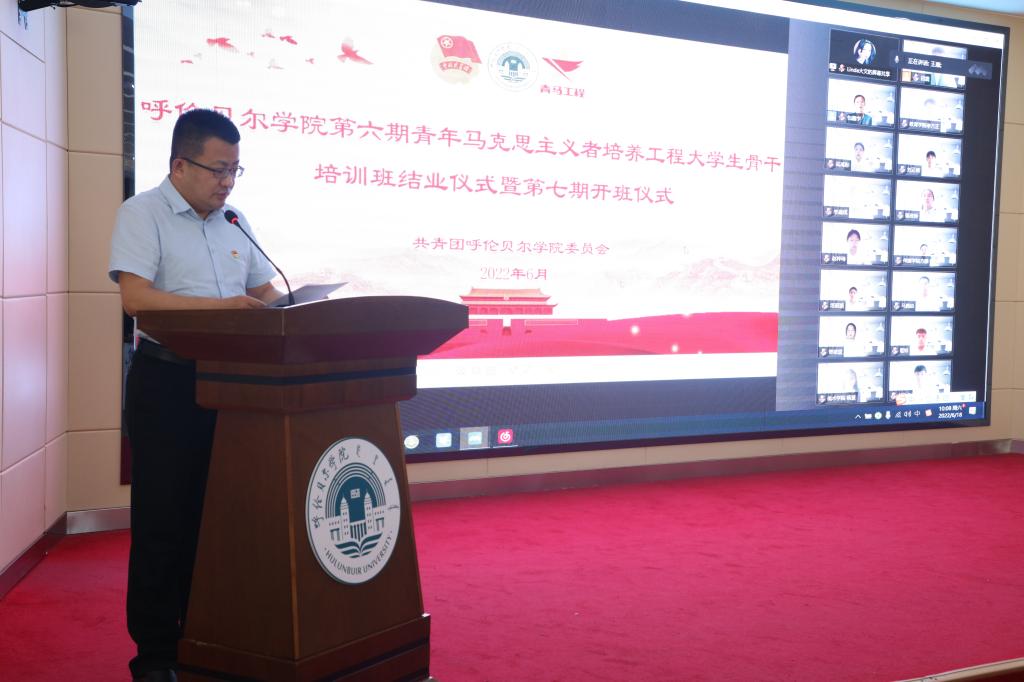 为深入学习贯彻落实习近平总书记系列重要讲话精神,高举马克思主义伟大旗帜,切实做好美加墨世界杯官网“青马工程”培训工作,6月18日上午,美加墨世界杯官网“青年马克思主义者培养工程”大学生骨干培训班第六期结业仪式暨第七期开班仪式在崇文楼A201会议室举行。校党委副书记张国栋、校团委书记郝新君、各学院党总支副书记、全校团干部出席本次会议,第六期、第七期“青马班”学员线上参会,团委副书记格根塔娜主持仪式。
