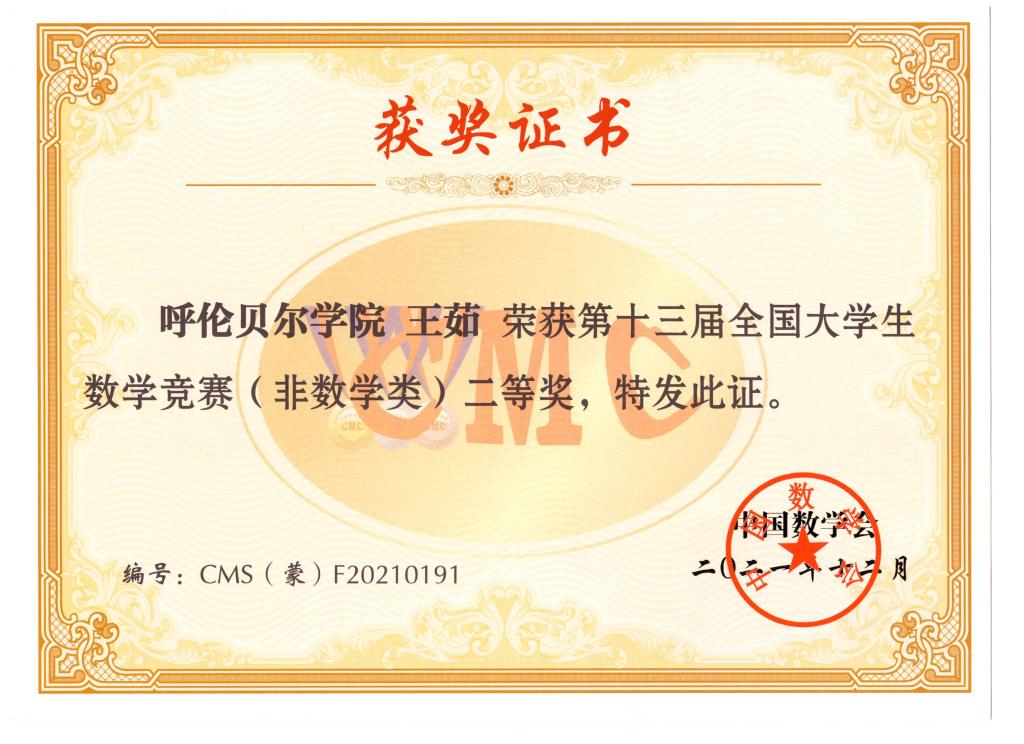 本届省赛由内蒙古大学承办,全区共有21所高校,1857名选手参加比赛。数学与统计学院高度重视此次竞赛,克服疫情等诸多困难,组织专业教师赛前培训指导,通过竞赛专题研讨提升参赛同学解题能力和创新意识。经过激烈角逐,世界杯官网学子获得多项荣誉。