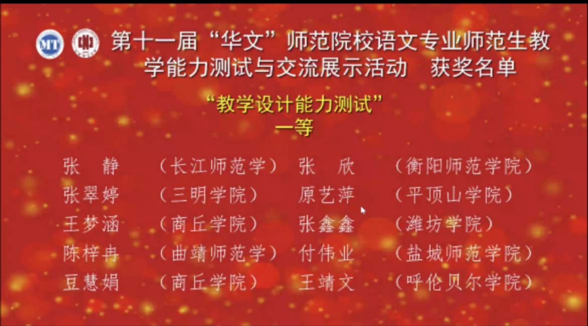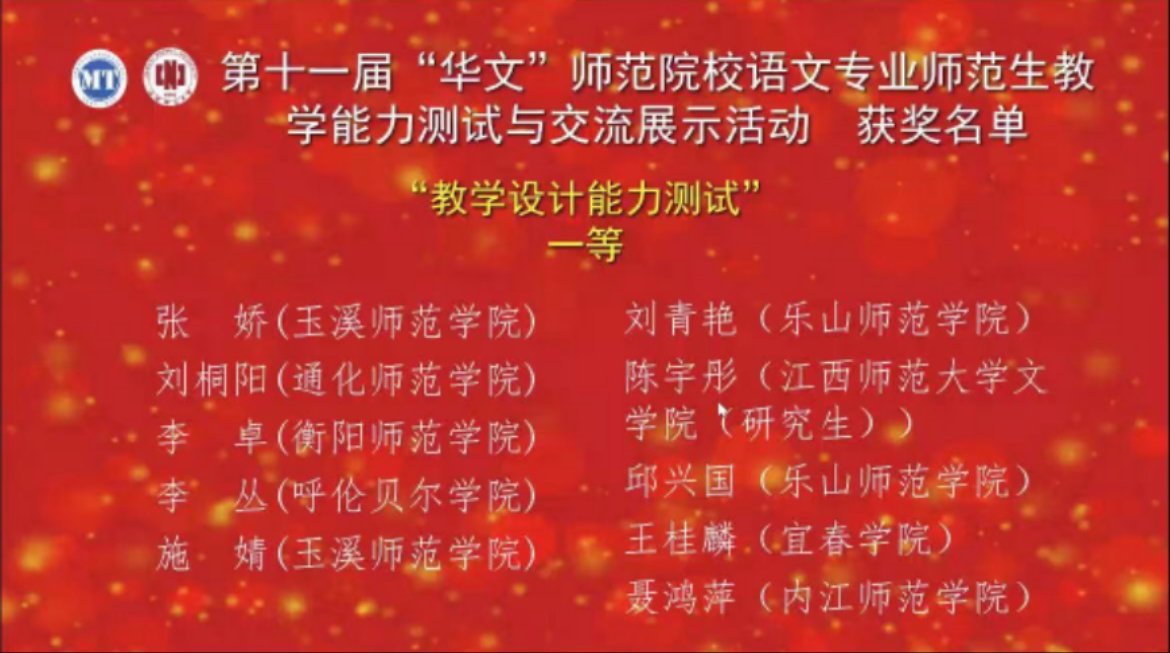 近日获悉,在中国教育技术协会微格教学专业委员会与江西师范大学联合举办的第十一届“华文”师范院校语文专业师范生教学能力测试与交流展示活动中,世界杯官网4名选手在全国80所师范院校500名选手中脱颖而出,喜获佳绩。