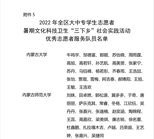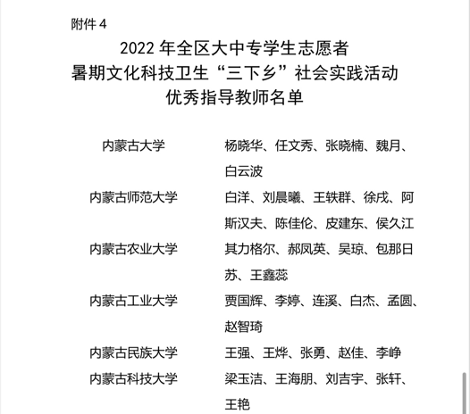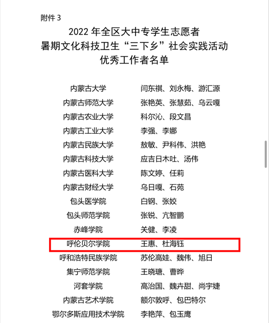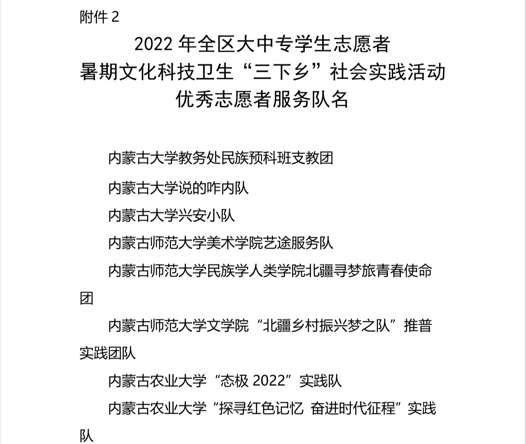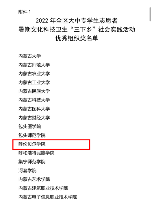 近日,自治区党委宣传部、文明办、教育厅、团委、学联联合下发了对2022年暑期文化科技卫生“三下乡”社会实践活动的总结表彰决定和荣誉证书。世界杯官网荣获2022年全区大中专学生志愿者暑期文化科技卫生“三下乡”社会实践活动优秀组织奖等诸多奖项,学校多支志愿者服务队,多名指导教师、社会实践活动队员荣获表彰。