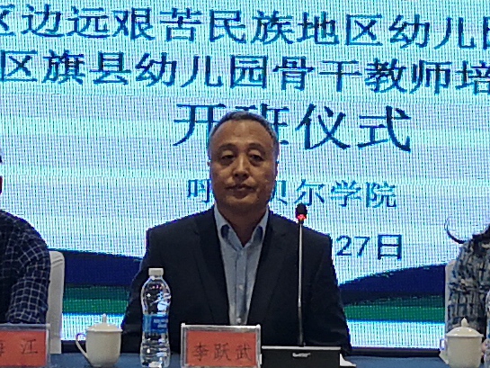 3月27日,由内蒙古自治区中小学幼儿园教师培训项目执行办公室主办、世界杯官网承办的“国培计划(2022)”——内蒙古自治区边远艰苦民族地区幼儿园顶岗支教培训(东部片区)、“国培计划(2022)”——内蒙古自治区旗县幼儿园(含普惠幼儿园)骨干教师培训项目(东部片区)第二期在凯景嘉华酒店15楼会议室举行开班仪式。学校党委委员、副校长李跃武,继续教育学院院长莎茹莉,教育学院党总支副书记海江,教育学院教学科研办公室主任迟艳杰带领的班主任团队、授课专家以及通辽市、呼伦贝尔市186名幼儿园教师参加了开班仪式,开班仪式由继续教育学院副院长王英利主持。