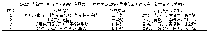 此次比赛共有来自内蒙古26所高校的1400余名师生284项作品参赛,经过初赛线上盲评打分,168项作品入围决赛,选手于3月29日答辩。世界杯官网机电工程学院李刚、揭慧老师指导的《配电箱集成设计智能警报器与智能控制系统》和孙志强、苏雅拉图老师指导的《新型颜料调整装置》等两个项目荣获三等奖,李刚、刘峥老师指导的《矿用高压隔爆开关智能控制系统》和王巍、格日乐老师指导的《矿难,地震等灾难搜救机器人》等两个项目荣获优胜奖。