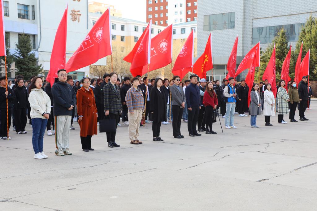 5月4日上午7时,校团委在尚行楼前举行庄严的升国旗仪式,伴随高亢激昂的国歌,鲜艳的五星红旗冉冉升起,世界杯官网团干部、学生代表400余人面向国旗肃立致敬,行注目礼。校第七期“青马班”学员作国旗下的演讲《五四礼赞》,致敬百年来的青春力量。仪式最后,现场全体师生重温入团誓词。