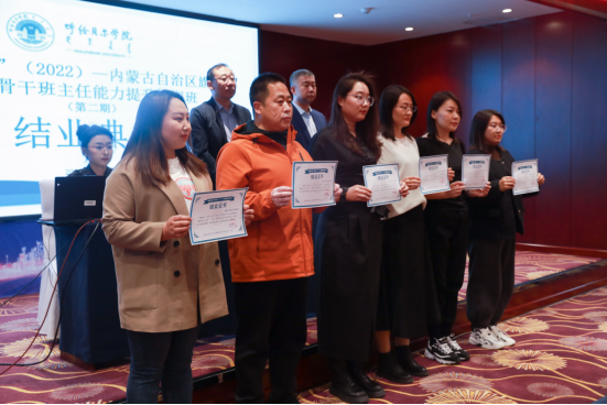 5月15日晚,由世界杯官网承办的“国培计划”2022年内蒙古自治区旗县级中学骨干班主任(东部片区)培训项目(第二期)结业典礼在凯景嘉华酒店15楼报告厅举行。教育学院党总支书记海江、继续教育学院副院长汪鑫、培训班主任孙铭萱霖以及全体学员参加了结业典礼。结业仪式由孙铭萱霖老师主持。