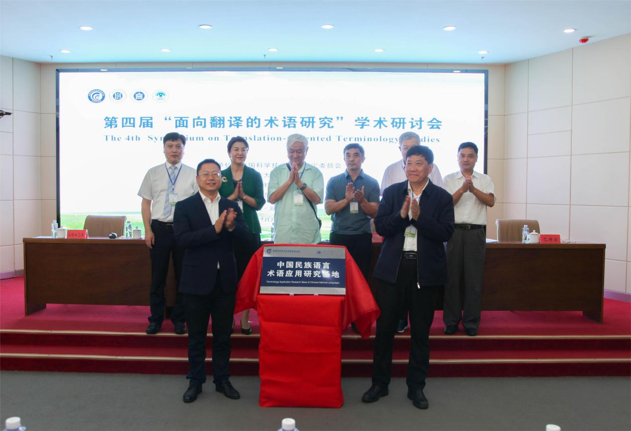 全国科学技术名词审定委员会专职副主任裴亚军和内蒙古大学党委委员、副校长额尔很巴雅尔共同为中国民族语言术语应用研究基地揭牌。