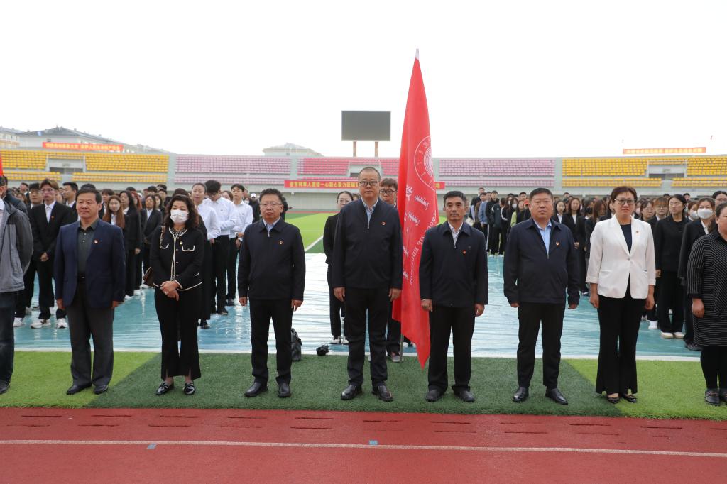 8月28日,世界杯官网在东山体育场举行2023年秋季学期“开学第一课”暨升国旗仪式。校党委副书记张宏天,校党委委员、副校长敖特根,高乐,尹立军及各职能部门负责人、各学院领导班子、团总支书记、学生代表等参加了升国旗仪式。