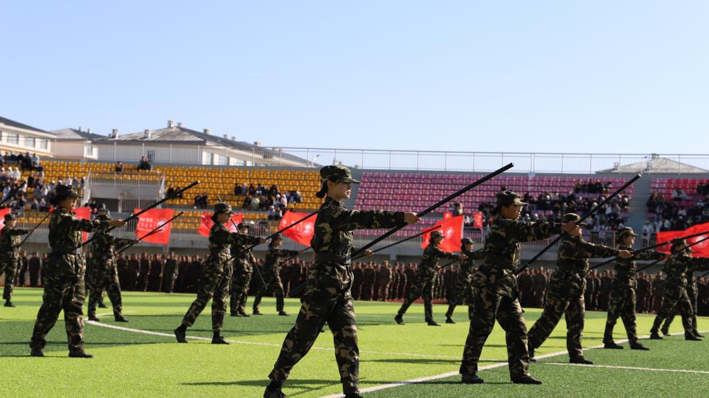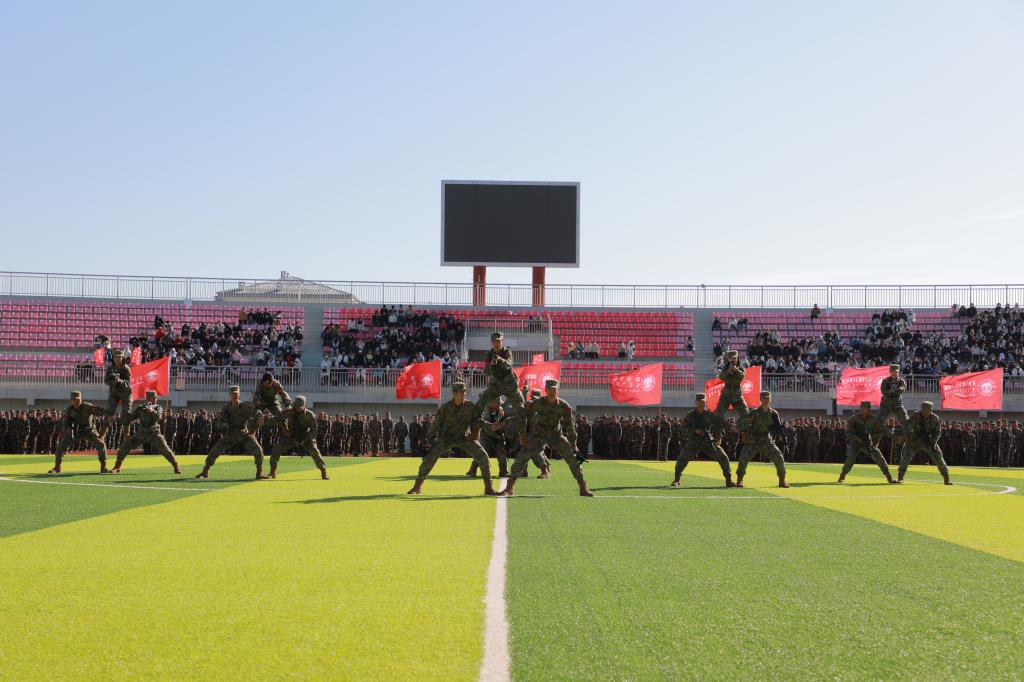 庄严、隆重的升国旗仪式后,进行军训汇报表演,16个学院,66支新生军训方队踏着《中国人民解放军进行曲》的激昂旋律依次走过主席台,他们军容严整、英姿飒爽、脚步铿锵,充分展示了呼院学子斗志昂扬、意气风发的精神风貌和军训取得的丰硕成果。随后,他们在教官的口令声中依次进行了2023级军训学员匍匐刀表演、应急棍术表演、军训教官战术表演等精彩纷呈的成果展示。现场高潮迭起,掌声雷动。
