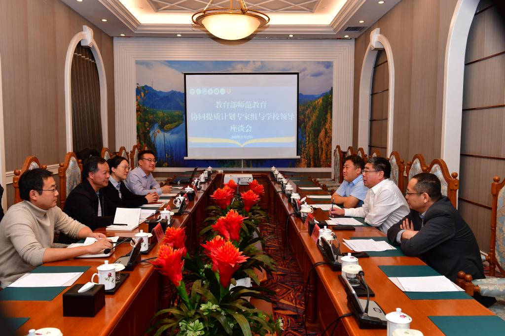 尹立军就师范教育协同提质计划项目启动以来,学校在提升工作能力、师资队伍建设,学生访学交流、学科建设、顶层设计、教育信息化能力提升、组团资源共建共享、教师培训、教学能力提升等九个方面取得的成效,以及未来在博士教师培养,学科专业一体化建设,联合培养学生,双向干部挂职,思政队伍建设等五个方面亟待解决的问题及工作建议进行汇报。