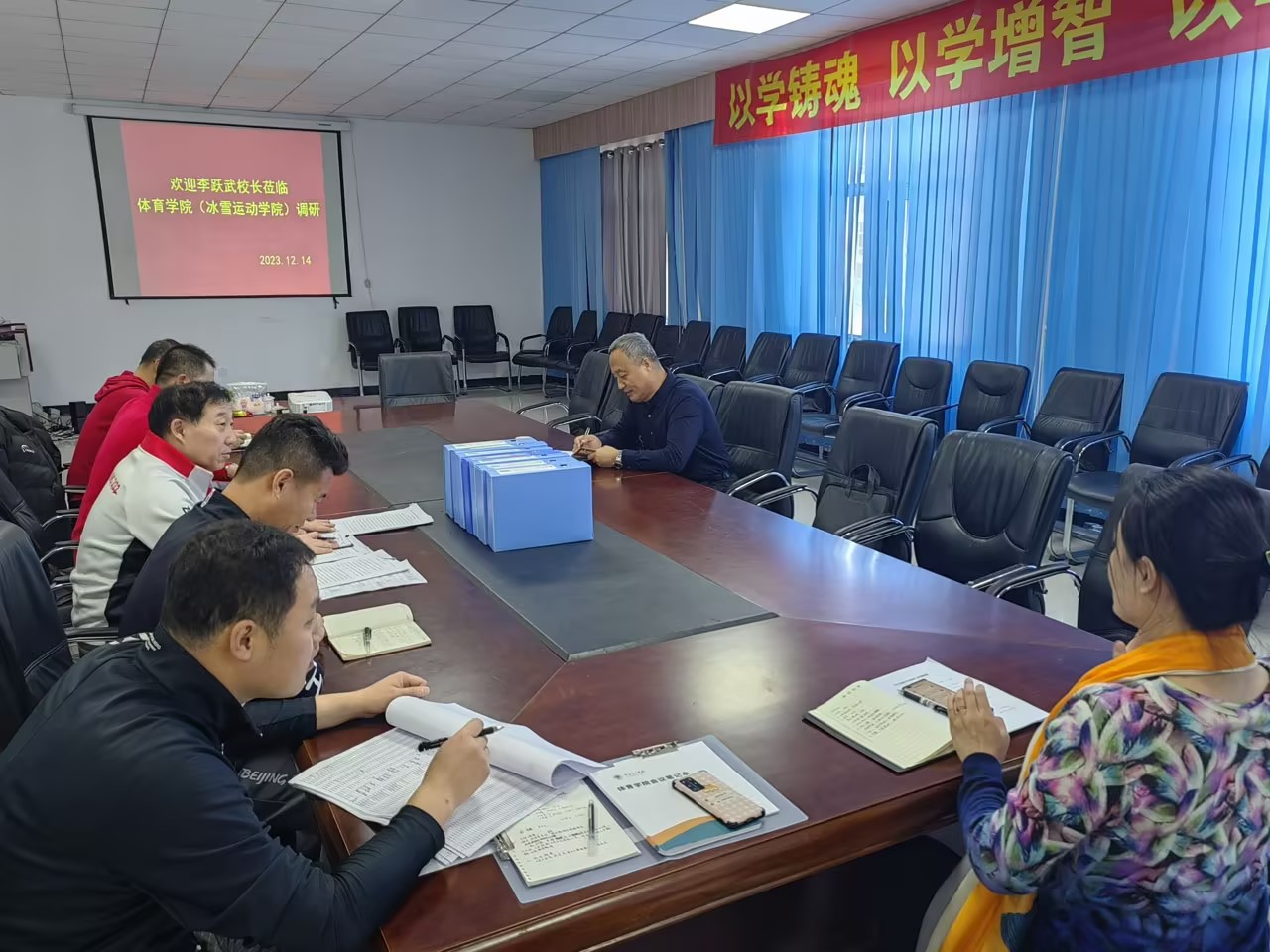 12月14日,校党委委员、副校长李跃武深入体育学院(冰雪运动学院)调研指导工作。体育学院(冰雪运动学院)班子成员、环节干部参加调研座谈会。