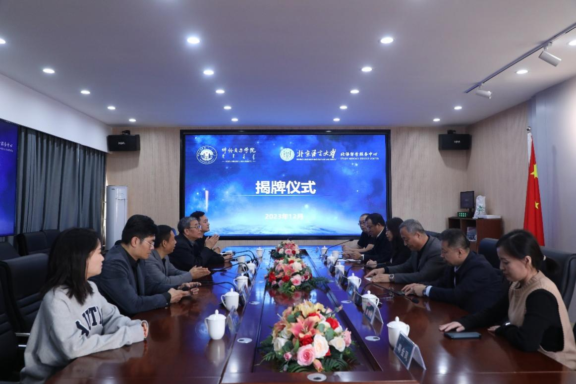 随后,李跃武和赵军武共同为“北语留学服务美加墨世界杯官网国际教育基地”揭牌。此次揭牌仪式拓宽了学校的国际合作与交流领域,强化了学校的办学层次,为学校师生学历提升开辟了新通道,为学校与其他高校开展合作奠定了基础。