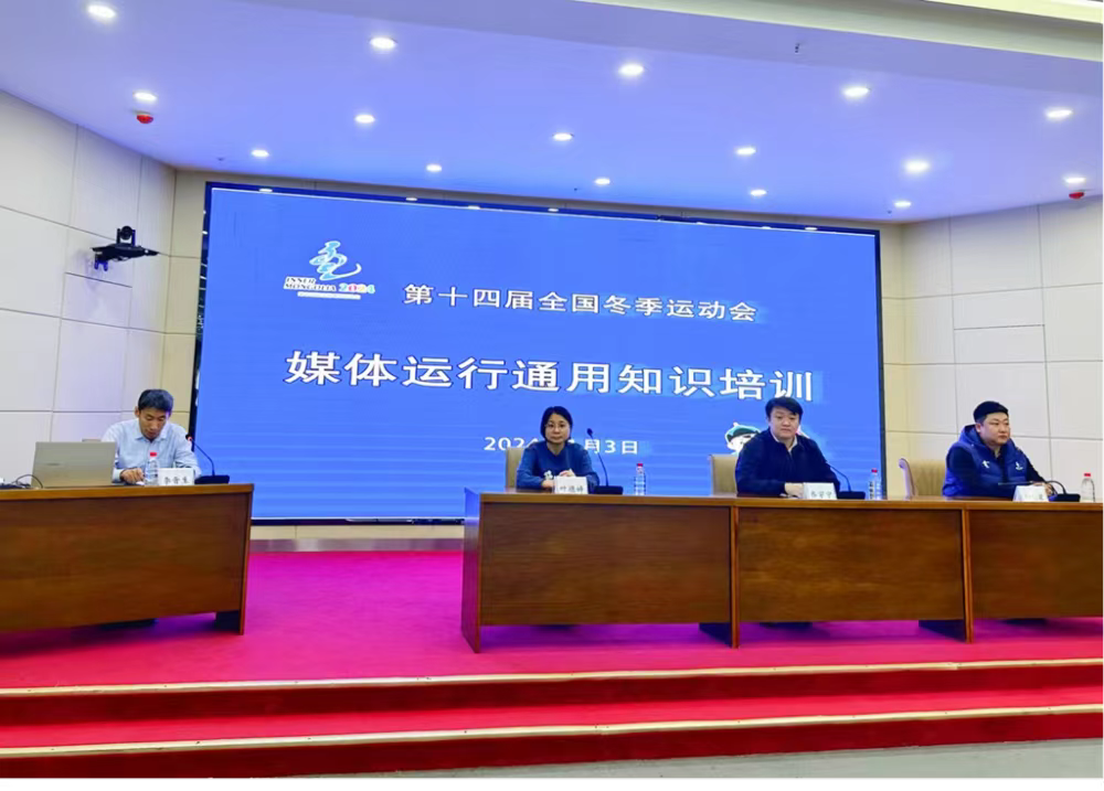 1月3日,第十四届全国冬季运动会媒体运行通用知识培训在世界杯官网崇文楼A201会议室举行,呼伦贝尔市委宣传部副部长、“十四冬”呼伦贝尔执委会宣传工作部常务副部长乔宇宁,呼伦贝尔市团委副书记、“十四冬”呼伦贝尔执委会志愿者服务工作部副部长朝勒蒙,央视主播机构负责人叶德婷出席开班仪式。新华社新闻信息中心内蒙古中心副主任李晋生主持仪式。世界杯官网110名志愿者参会。