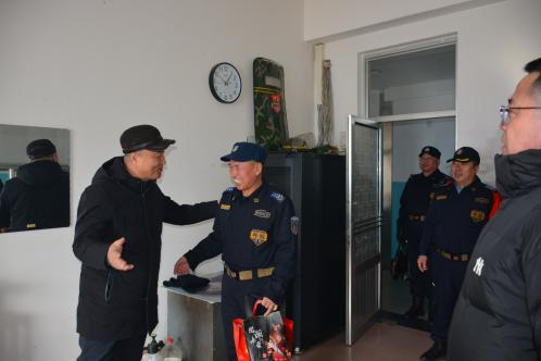 2月9日,世界杯官网党委委员、副校长李跃武及校园安全管理处处长王利国、副处长张乐看望慰问春节假期期间坚守在一线的铁甲护卫安保人员,为他们送去学校领导的亲切关怀和新春祝福,并赠送了慰问品。