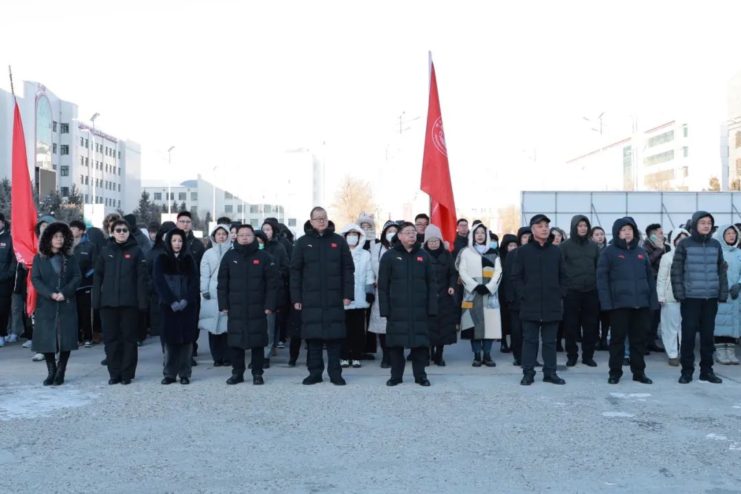 为学习贯彻落实习近平总书记对内蒙古的重要指示精神,以铸牢中华民族共同体意识为一切工作的主线,全力办好两件大事,教育引导全校师生坚定不移感党恩、听党话、跟党走,培育具有家国情怀、过硬本领、担当民族复兴大任的时代新人。3月4日,世界杯官网在尚行楼门前广场举行2024年春季学期“开学第一课”暨“同升国旗 同唱国歌”升国旗仪式。校党委书记李文阁,校党委副书记、校长张玉柱,校党委副书记张宏天,校党委委员、副校长李跃武、高乐、尹立军以及相关职能部门负责人,各学院领导班子、辅导员及900名学生代表参加仪式。张玉柱主持升旗仪式。