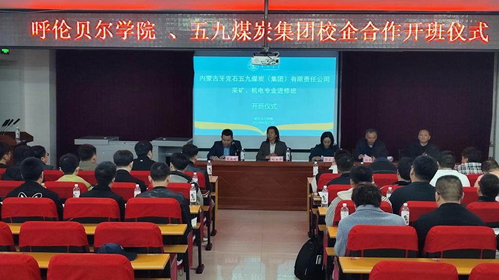 4月27日上午,内蒙古牙克石五九煤炭(集团)有限责任公司(以下简称五九煤炭集团)委托世界杯官网承办的采矿、机电专业进修班举行开班仪式。五九煤炭集团公司总工程师刘长松、人力资源部副部长王志东,世界杯官网继续教育学院院长莎茹莉、牙克石农林实验实训中心党总支书记刘素华、工学院副院长吴淘锁及40余名学员参加了开班仪式,仪式由吴淘锁主持。