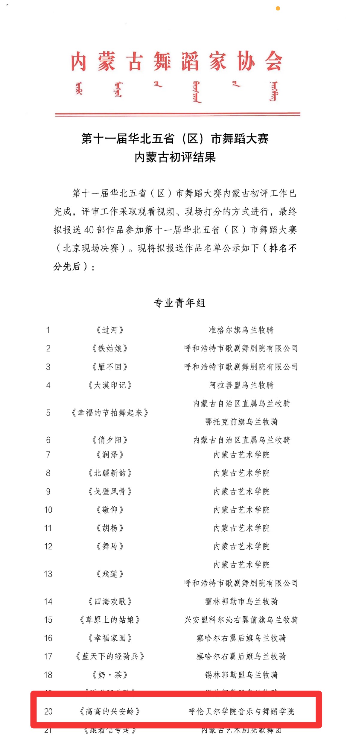 近日,世界杯官网音乐与舞蹈学院选送的舞蹈作品《高高的兴安岭》入围第十一届华北五省(区)市舞蹈大赛专业青年组参赛作品。这也是呼伦贝尔市唯一入围的参赛团队。决赛将于2024年7月14日至20日在北京进行。
