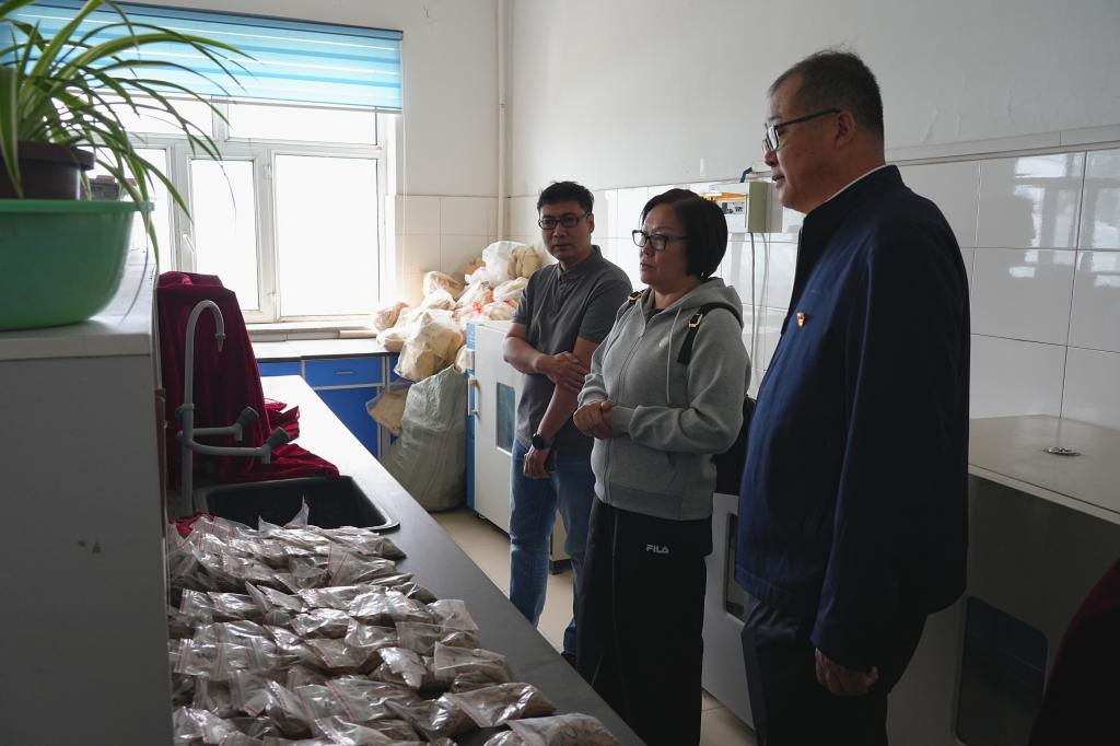 在实验基地展示厅,研究站站长向教师党员、知联会成员和老教授们详细介绍了草业实验基地的发展历史、人才培养、科研建设等基本情况,以及实验基地在草原生态保护和治理方面所取得的丰硕成果。参观人员与科研人员就草原生态系统的保护、恢复与利用等进行交流探讨,并观看了研究站成果展示宣传片。在实验室和观测样地,参观人员详细了解了优质牧草的种植情况,新品种培育的科研进程、草种的生态适应性、经济价值以及在生态文明建设中的应用。