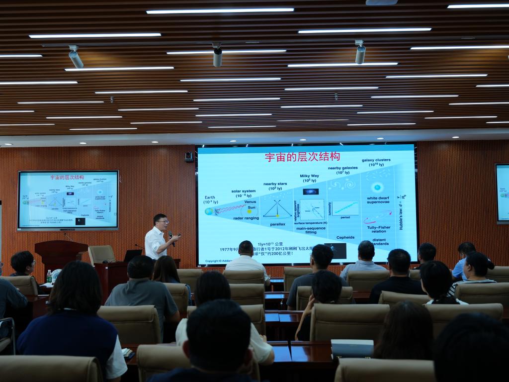 常进院士就“空间探测暗物质粒子”这一主题进行了报告,他介绍了“悟空号”暗物质粒子探测卫星的工作原理、在轨运行状况,并汇报了该卫星在电子宇宙射线、核素宇宙射线以及伽马射线探测领域取得的关键科学成就。