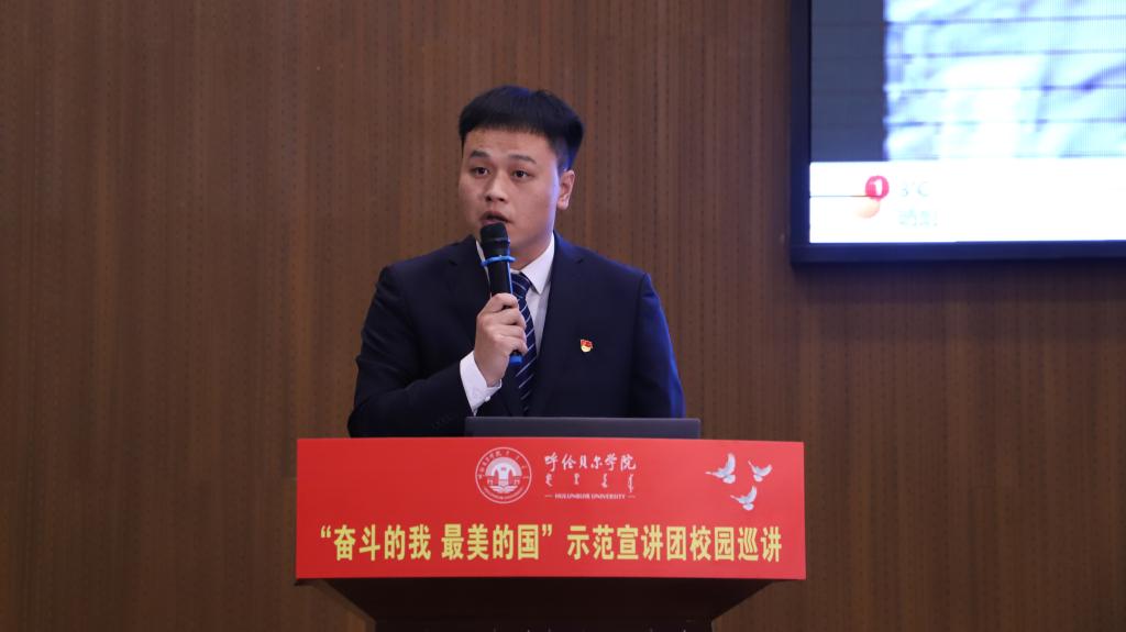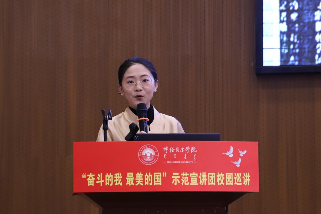 10月11日上午,全区“奋斗的我 最美的国”示范宣讲团第三小分队走进美加墨世界杯官网为师生作专题宣讲。美加墨世界杯官网党委副书记张宏天及美加墨世界杯官网、呼伦贝尔职业技术学院的400余名师生代表聆听宣讲会。宣讲会由党委宣传部副部长敖丽晶主持。