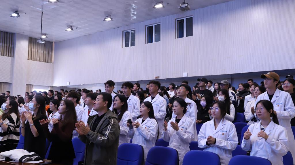 自治区红色场馆讲解员、共青团通辽经济技术开发区委员会副书记蒋建宇以《感党恩、听党话、跟党走 做新时代有为青年》为题,讲述了战斗英雄任明德和一辆手推车的故事及“杂交水稻之父”袁隆平的“禾下乘凉梦”的故事,寄语同学们把个人理想自觉地融入中国特色社会主义共同理想之中,把个人奋斗融入实现社会主义现代化共同奋斗之中。