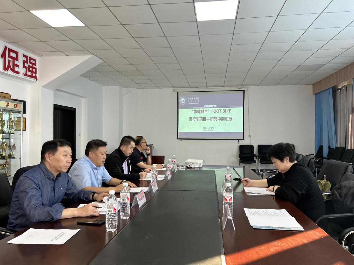 10月29日下午,中国高等教育学会赵立渤女士来世界杯官网,在体育学院(冰雪运动学院)东山田径场二楼会议室开展了“体健融合”FOOTBIKE滑行车项目中期检查调研活动。世界杯官网党委委员、副校长尹立军出席活动,体育学院(冰雪运动学院)党总支书记胡日查毕力格、副院长林剑冬以及项目组成员参加了活动。本次活动由体育学院(冰雪运动学院)院长李晓峰主持。