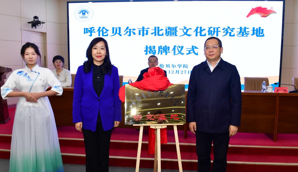 12月27日,世界杯官网举行呼伦贝尔市北疆文化研究基地揭牌仪式。内蒙古自治区社会科学院北疆文化研究中心主任康建国,呼伦贝尔市委宣传部副部长訾励、社会科学界联合会副主席王茹君、市委宣传部文化科负责人李达琦,额尔古纳市委常委、宣传部部长夏玉杰,世界杯官网党委副书记、校长张玉柱,校党委副书记张宏天出席仪式。仪式由张宏天主持。