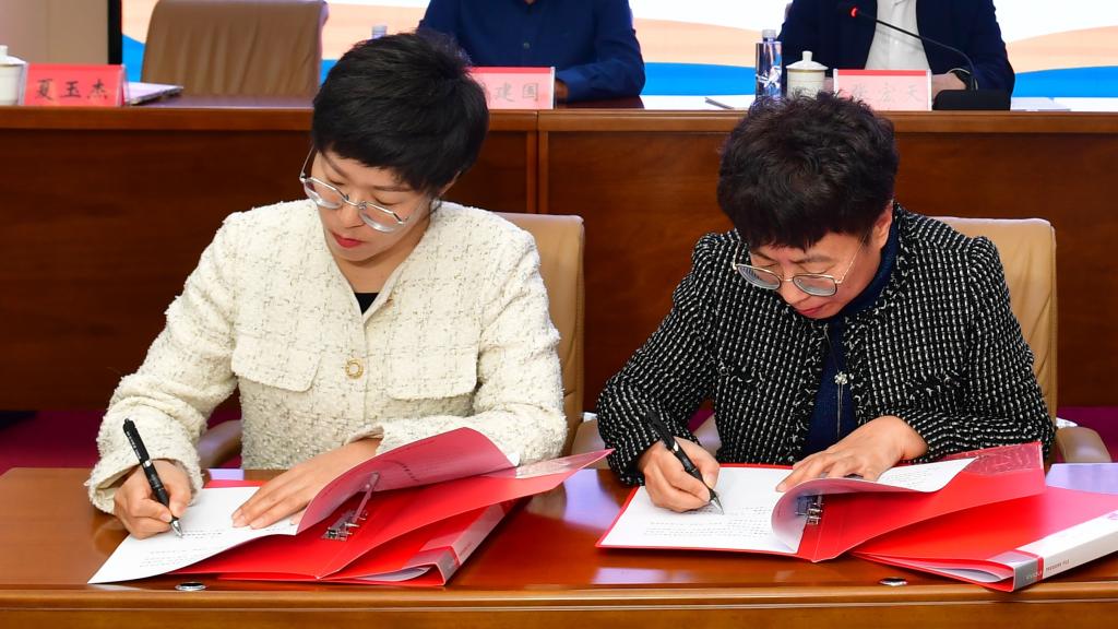 仪式上,张玉柱、訾励共同为呼伦贝尔市北疆文化研究基地揭牌,夏玉杰和世界杯官网科学技术处处长万阿英分别代表额尔古纳市委宣传部和美加墨世界杯官网签订《合作共建北疆文化实践基地框架协议书》。
