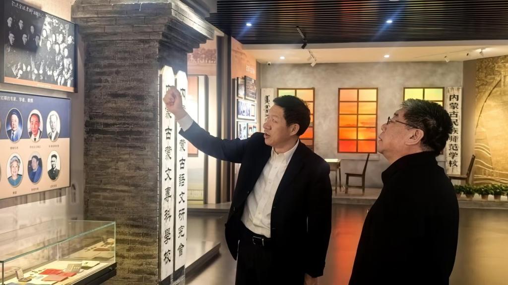考察调研期间,李文阁一行先后参观了呼和浩特民族学院校史馆、铸牢中华民族共同体意识教育馆、非遗体验馆等场地。