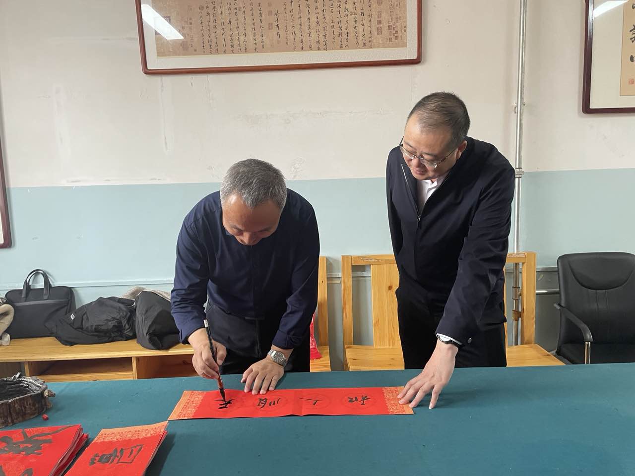 成立仪式后,校领导和书法俱乐部成员共同参与了“迎新年、写对联、送祝福”为主题的庆祝活动,书写和赠送春联、“福”字。通过活动,教师们提前感受到了新年的喜悦,深入了解和体验了中国书法艺术的魅力。