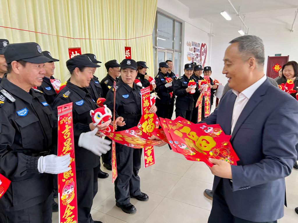 活动现场,李跃武向学校保安、保洁人员问好,与他们亲切交谈,仔细询问他们的工作和生活情况,叮嘱大家守好岗位的同时要注意防寒保暖,对他们不辞辛劳、无私奉献的精神给予充分肯定和高度赞扬。随后,李跃武带领“银龄”志愿服务者一同为大家送上对联、福字、蛇年吉祥物等慰问品,为大家送来浓浓新春祝福,勉励大家在新的一年里用更大的热情,全身心投入到工作中。