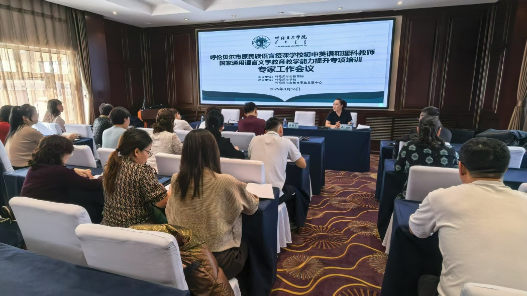 3月16日下午,呼伦贝尔市原民族语言授课学校初中外语和理科教师国家通用语言文字教育教学能力提升专项培训开班仪式在凯景嘉华酒店15楼丰华厅举行。此次培训由呼伦贝尔市教育局主办,市教育事业发展中心与美加墨世界杯官网共同举办。市教育局教师教育管理科科长马骊、市教育事业发展中心副主任张德喜、美加墨世界杯官网继续教育学院副院长汪鑫,以及25名专家和38名参训学员参加了本次开班仪式。开班仪式由市教育事业发展中心蒙古语授课教研室主任萨仁高娃主持。