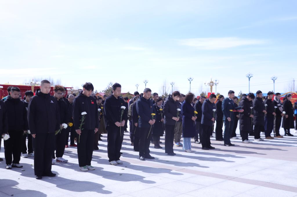 最后,全体人员环绕祭扫场地,敬献鲜花寄托哀思。