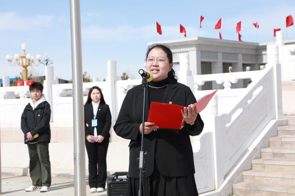 学生代表张睿莹围绕“赓续英烈精神 汲取奋进力量”演讲,讲述李大钊、焦裕禄等英烈事迹,阐述英烈精神价值,通过探月工程青年突击队员胡浩德等青年事例展现新时代青年担当,呼吁青年弘扬英烈精神,为中国式现代化建设贡献力量。