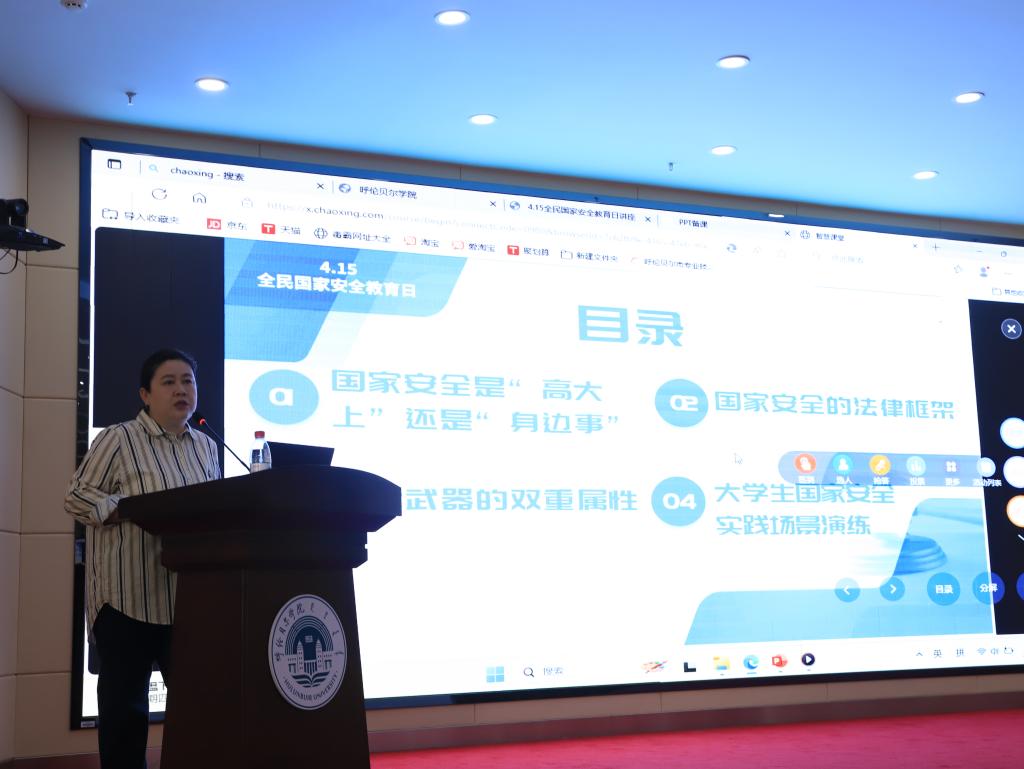 在尚行楼前举办了主题为“第十个4·15全民国家安全教育日”宣传教育活动。活动由学校党委宣传部、团委、学生工作处与校园安全管理处主办,呼伦贝尔市公安局反恐怖和特巡警支队、呼伦贝尔市公安局禁毒支队、国家税务总局呼伦贝尔经济技术开发区税务局、呼伦贝尔市看守所、海拉尔公安分局刑警大队、海拉尔公安分局禁毒大队和海拉尔区尼尔基路消防救援站协办。
