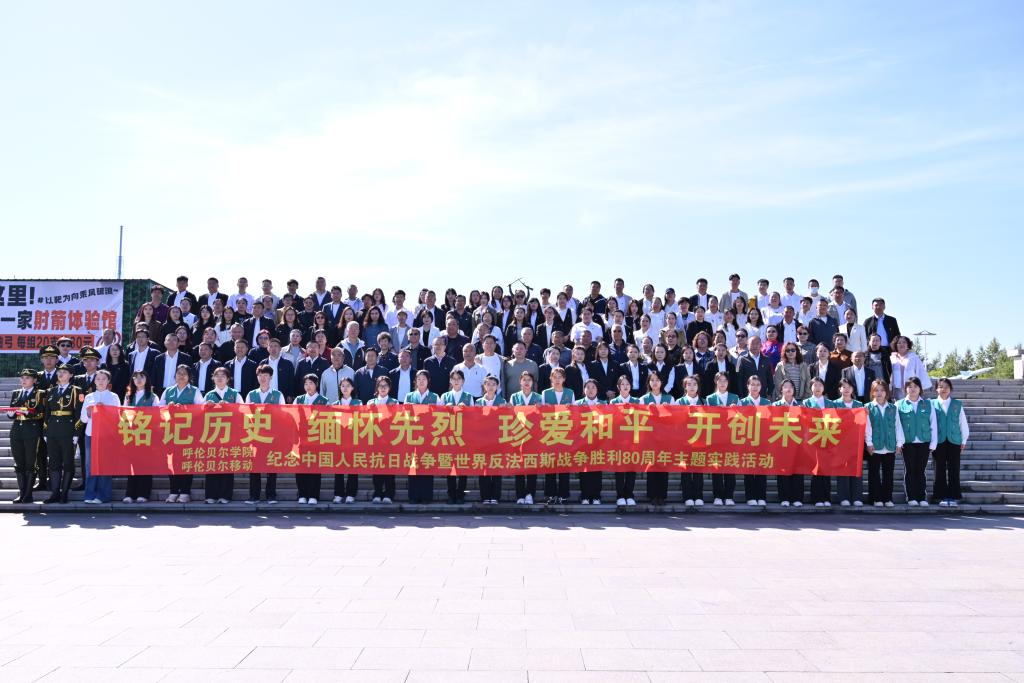 9月2日上午,世界杯官网联合呼伦贝尔移动公司在世界反法西斯战争海拉尔纪念园共同举办“铭记历史 缅怀先烈 珍爱和平 开创未来”纪念中国人民抗日战争暨世界反法西斯战争胜利80周年主题实践活动。学校党委副书记张宏天,校党委委员、副校长李跃武;呼伦贝尔移动公司党委书记、总经理张仰海,党委委员、副总经理胡喜贵,党委委员、工会主席、副总经理陈立伟,党委委员、纪委书记、副总经理舒成超,学校职能部门工作人员、离退休老同志、辅导员、青马班学员和呼伦贝尔移动公司职工代表180余人共同相关参加活动,活动共分为三个环节。