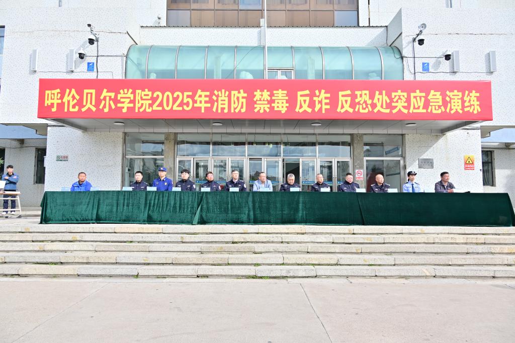 演练有序开展,各环节衔接紧密、实战性强:在消防应急演练中,首先模拟了火灾突发事件,学生们在消防警报声中,用湿毛巾捂住口鼻,沿预定路线快速疏散至安全地带,到达安全地带后,消防员详细地讲解灭火器的使用方法,学校救护医疗队通过现场示范为同学们讲解心肺复苏、海姆立克紧急救治;在反恐处突演练中,海拉尔公安分局反恐怖和特巡警大队模拟“恐怖分子”闯入校园场景,特警队员迅速制服了“歹徒”,并展示了破八刀和刀功持枪技术,随后美加墨世界杯官网义警队带来警务技能联合展演;在高空救援演练中,消防部门启用70米登高平台消防车,模拟登高救人场景,救援人员精准操作设备完成高空救人,直观展现消防队伍的专业素养与团结奉献精神;开展禁毒与反诈宣传,海拉尔公安分局禁毒大队工作人员对同学们发放宣传海报及手册,并邀请同学们近距离参观毒品模型,讲解毒品危害与辨识方法,同时,呼伦贝尔市公安局工作人员进行了反诈宣传工作,呼吁同学们共同抵制买卖“两卡”行为,维护社会平安。