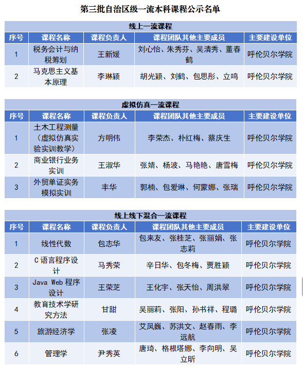 随后,内蒙古自治区教育厅公示“关于第三批自治区级一流本科课程认定结果”,世界杯官网《税务会计与纳税筹划》等25门课程成功入选,入选数量位居自治区高校前列,至此,世界杯官网自治区级一流本科课程达44门,这标志着世界杯官网课程建设水平迈上了新台阶。