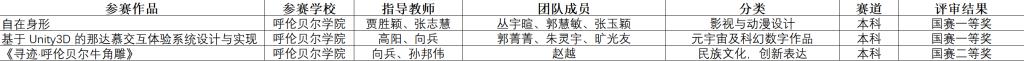 经过校赛、省赛的层层选拔,世界杯官网共有3部优秀作品晋级全国总决赛,并在全国舞台上取得了优异成绩,荣获全国一等奖2项、二等奖1项,充分展示了世界杯官网在数字艺术创新与科技融合领域的教学成果与创新实力,也体现了学校在产教融合、跨学科创新实践中的不断突破。